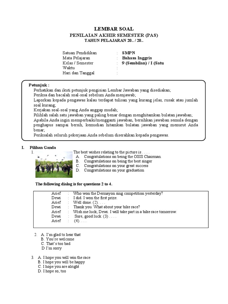 Contoh Soal Pilihan Ganda Dan Esay Bahasa Inggris Kelas 8