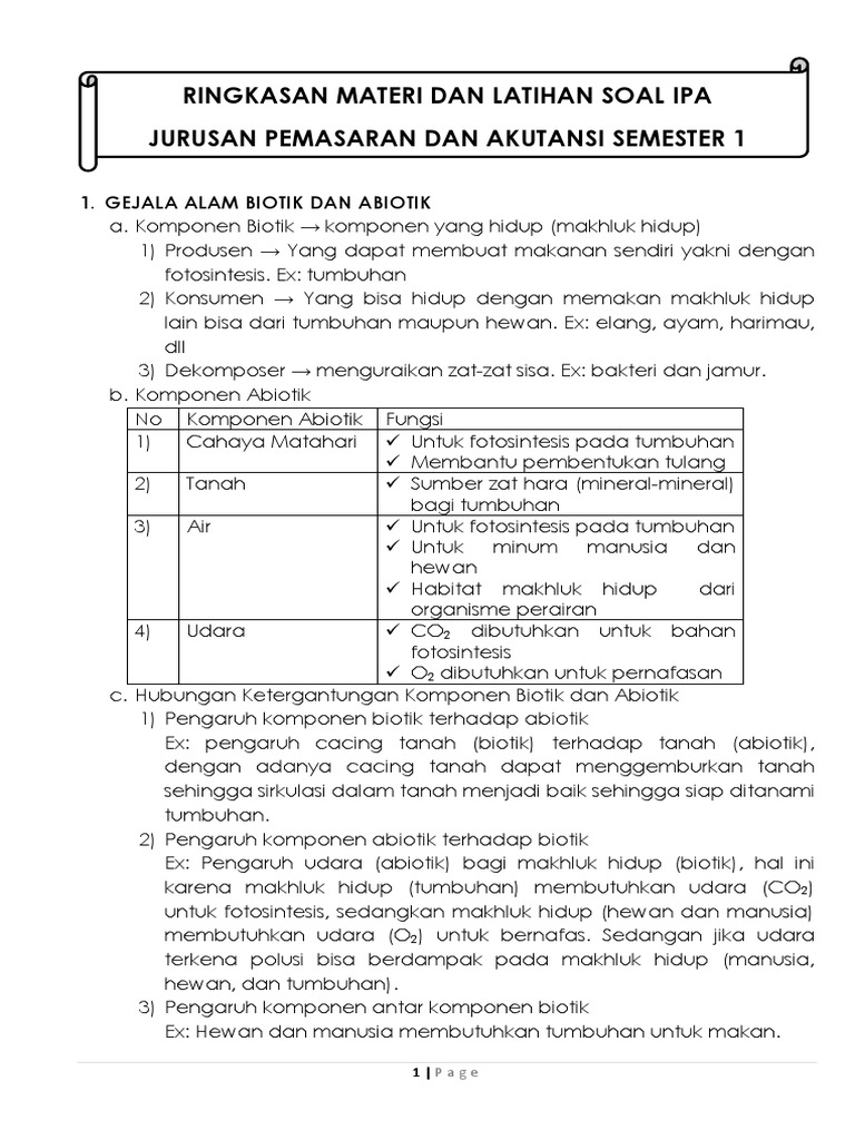 Ringkasan Materi Ipa Semester 1 Jurusan Pemasaran Dan Akutansi